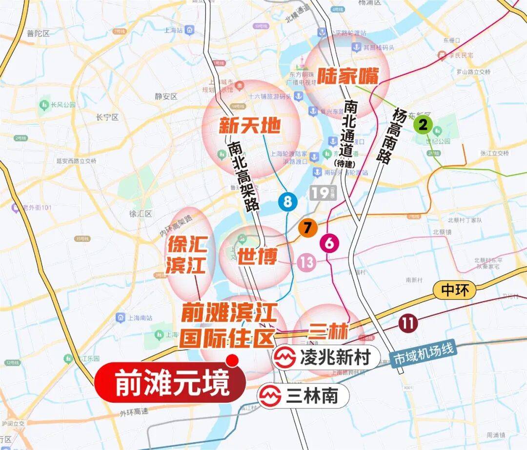 正是前滩滨江成熟的配套的与前滩商务区无缝一体,全黄浦江独一份的低密滨江氛围,以及便捷的通勤条件——周边有南北高架、中环、外环衔接,还有8/19号线凌兆新村站、市域机场线号线三林南站加持。