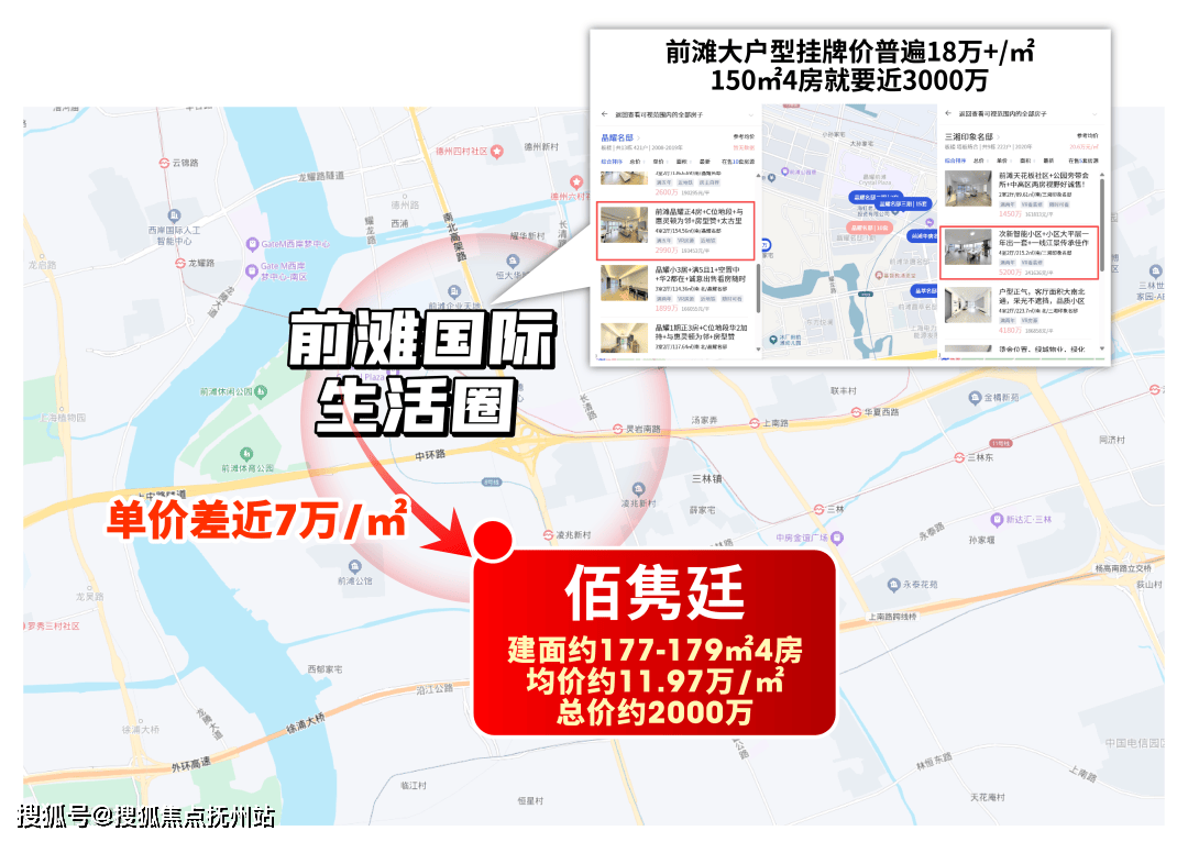 前滩作为“强锚点”,生活配套早已能满足高阶需求,区域内的改善客群无需为了更好生活离开,买房需求形成“内循环”(未来区域完成3房换4房)。佰隽廷既贴近核心,又有价格优势,既能承接前滩内部改善需求,也能吸引板块旁的高净值人群,流通性值得期待。