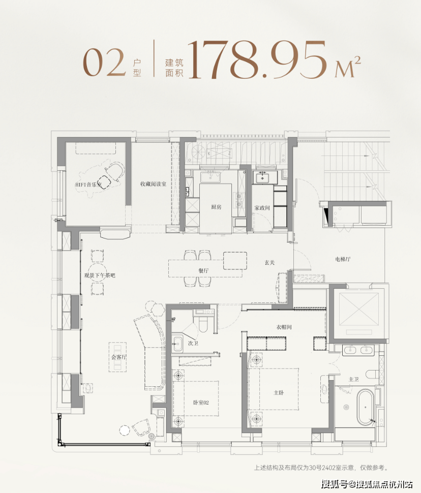 的完品实景呈现,突破标准化产品的局限,精心设计4套不同风格的样板间,为业主提供多元定制方案,无需后期费心改造。以建面约179㎡的边套为例,并未将北房间局限为常规卧室,而是灵活打造为HIFI音乐室与收藏阅读室