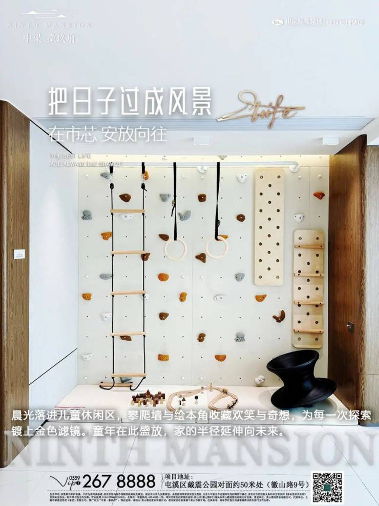 孩子的成长,需要一方可以肆意撒欢的天地。中梁·徽玖府的儿童休闲区,是“把日子过成风景”的生动注脚。攀爬墙的趣味设计、绘本角的温馨布置,将“探索欲”与“求知欲”巧妙融合,让孩子在攀爬、阅读、游戏中释放天性,收藏无数欢笑与奇想。