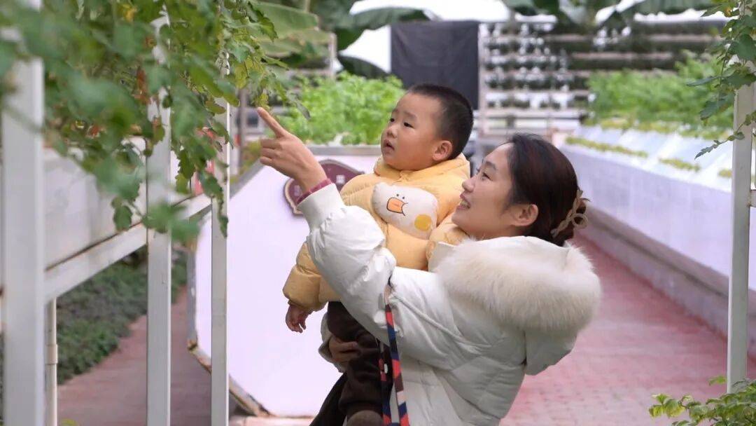田间地头里,十余种果蔬长得正盛;而在“智慧农场”,“农业产业化”的新模式正落地生根。在塔元庄同福乡村振兴示范园里,成排生菜在LED灯下舒展嫩叶,番茄藤蔓攀上3米高的水培架,鱼菜共生、南果北种……十足的科技范吸引不少游客前来观光打卡。
