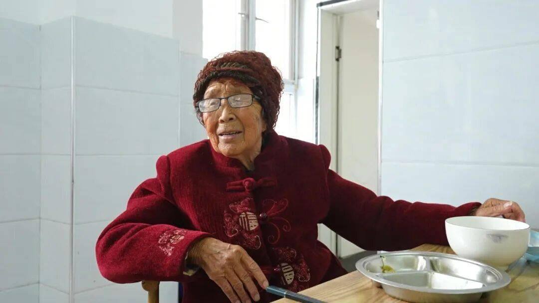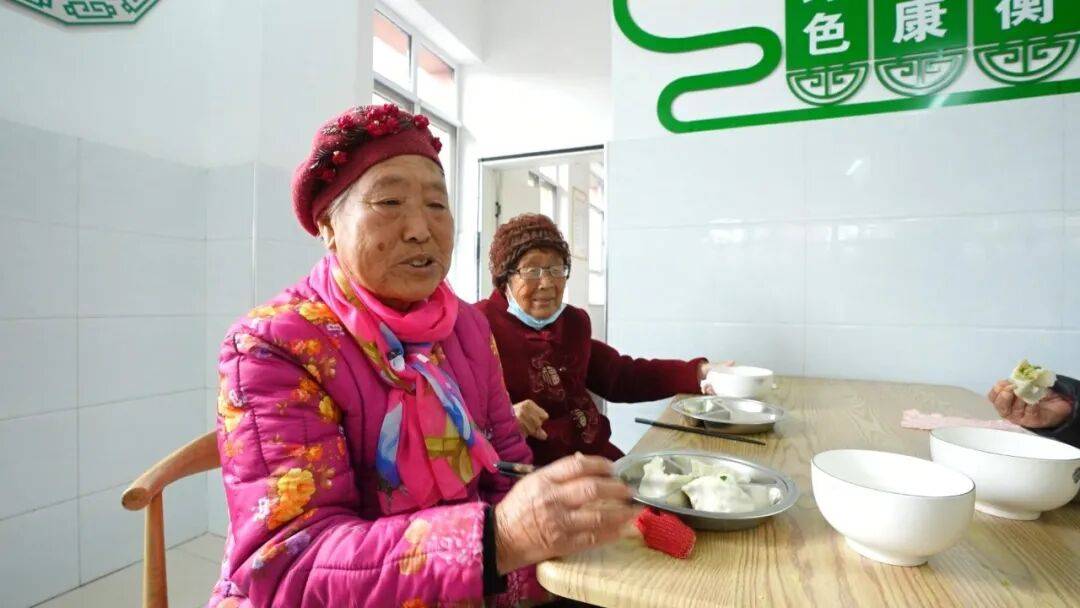 今年80(岁)了,有早餐有午餐,今天又吃饺子,可幸福了,吃得都胖墩墩的。
