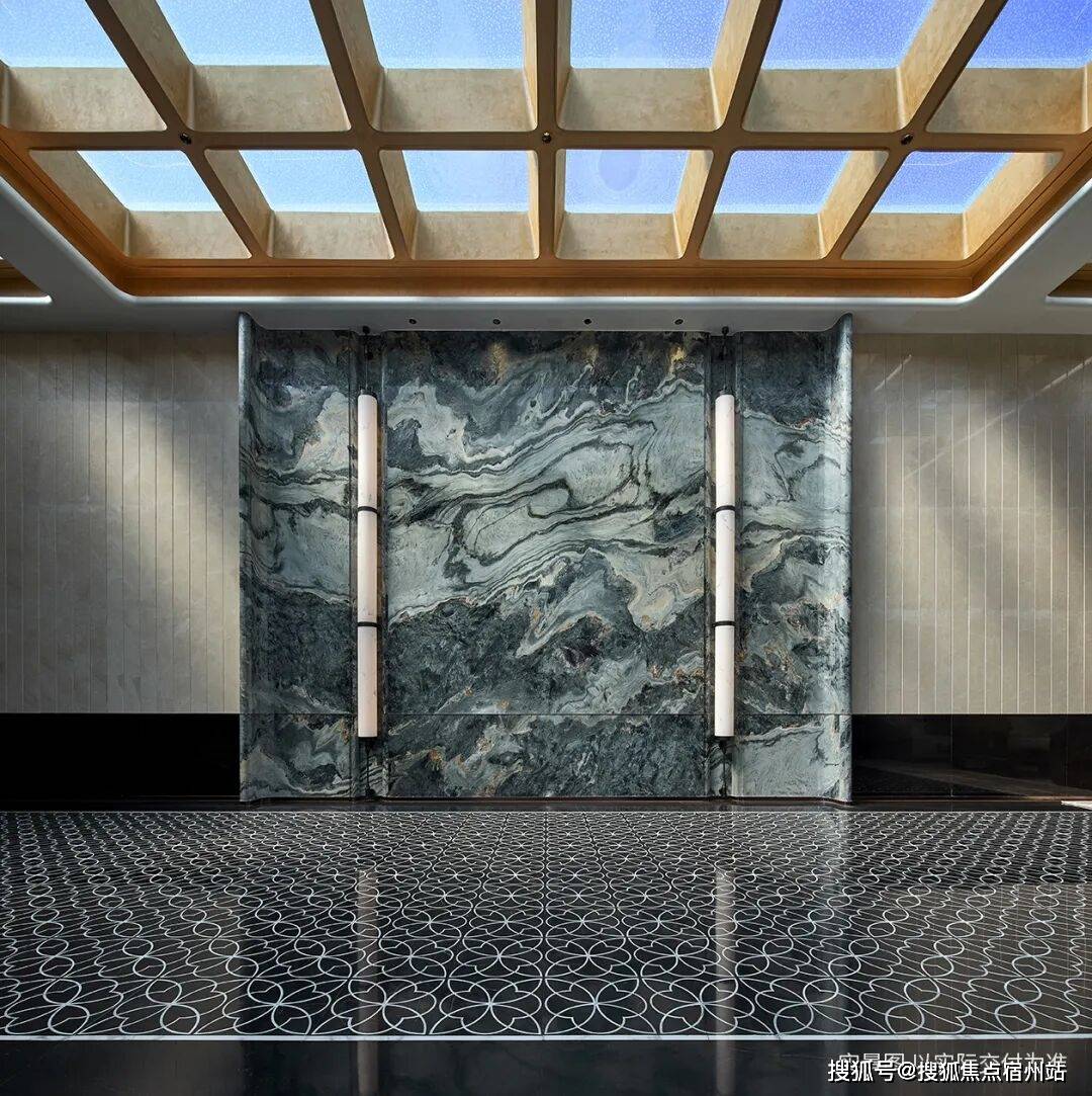 ”:它的纹理独一无二、自带磅礴气势,市面上能达到这种尺寸与纹理质感的奢石十分稀缺,以“包罗自然万象”为理念,强调天然美学,多运用在高端酒店大堂内。