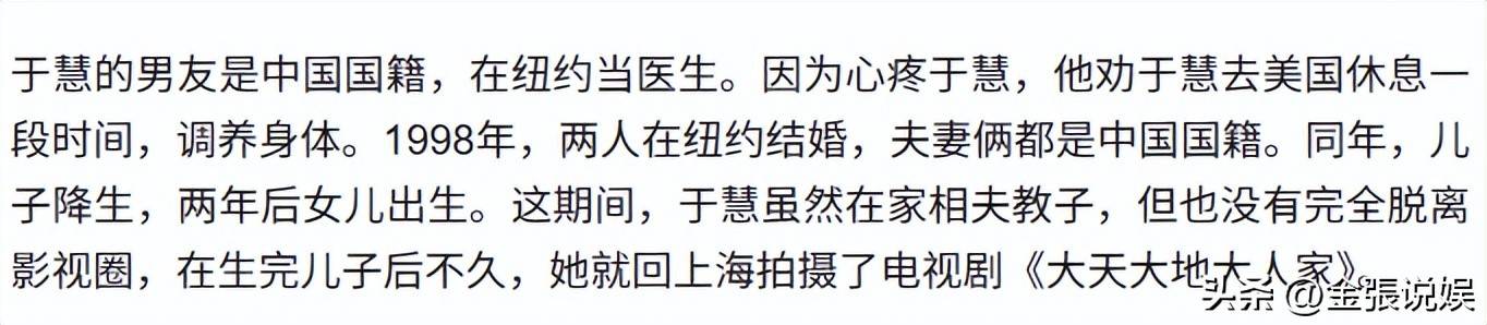 于慧的人生故事说起来很简单,就是一个女演员在事业和家庭之间找到了平衡点。