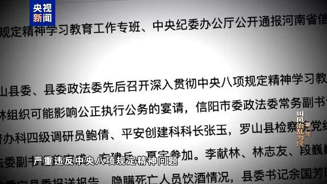 河南省信阳市、罗山县10名干部违规吃喝严重违反中央八项规定精神及背后的腐败问题