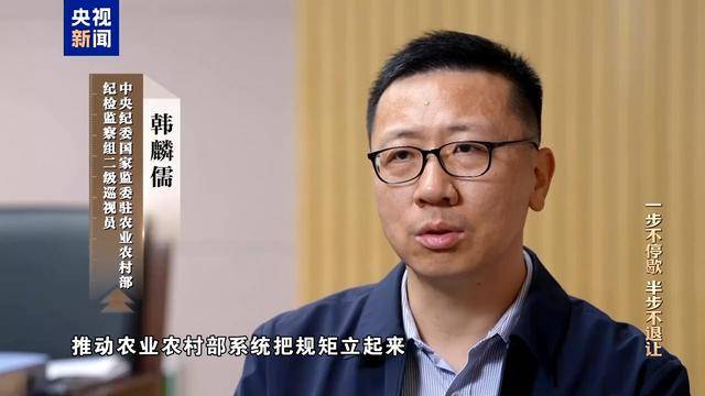 中央纪委国家监委驻农业农村部纪检监察组二级巡视员 韩麟儒:我们以零容忍态度严查违规吃喝等顶风违纪行为,严肃查处了5名领导干部的风腐交织问题,完善制度,堵塞漏洞,推动农业农村部系统把规矩立起来、纪律严起来、作风实起来、风气正起来,为推进新时代新征程“三农”工作高质量发展提供有力保障。