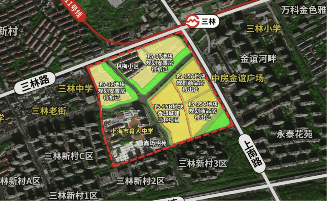 项目四至范围:块东至15-15A和15-15B地块、西邻新桥港、南至永泰路、北邻三林塘,整于鑫筠明苑东侧!