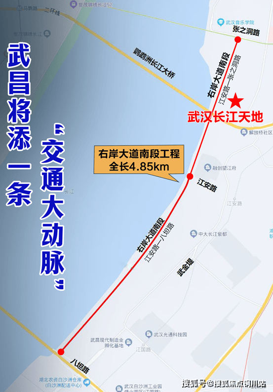 2023年初,武汉城建旗下子公司中标右岸大道南段(临江大道)工程(张之洞路-江安路)工程,未来武汉长江天地门口的断头路将被打通,该道路规划为地面辅路双向4车道+地下主线车道的双层路网。