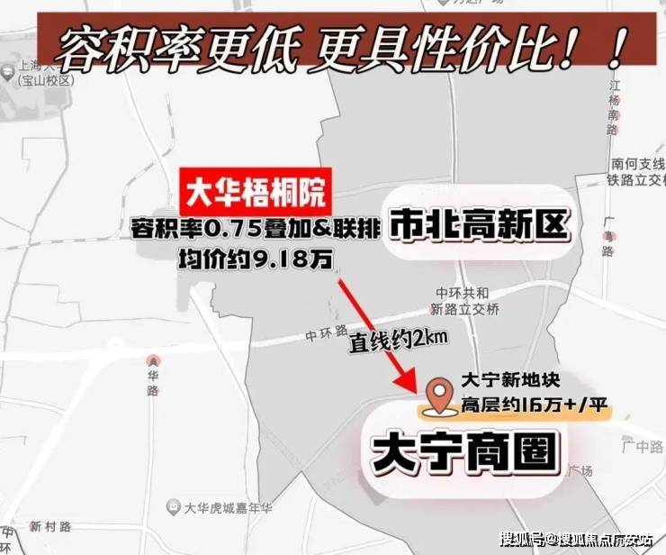 ② 其次,项目与市北高新区&大宁商圈的直线km,大宁高层的价格可以买到大华梧桐院的高阶改善别墅!