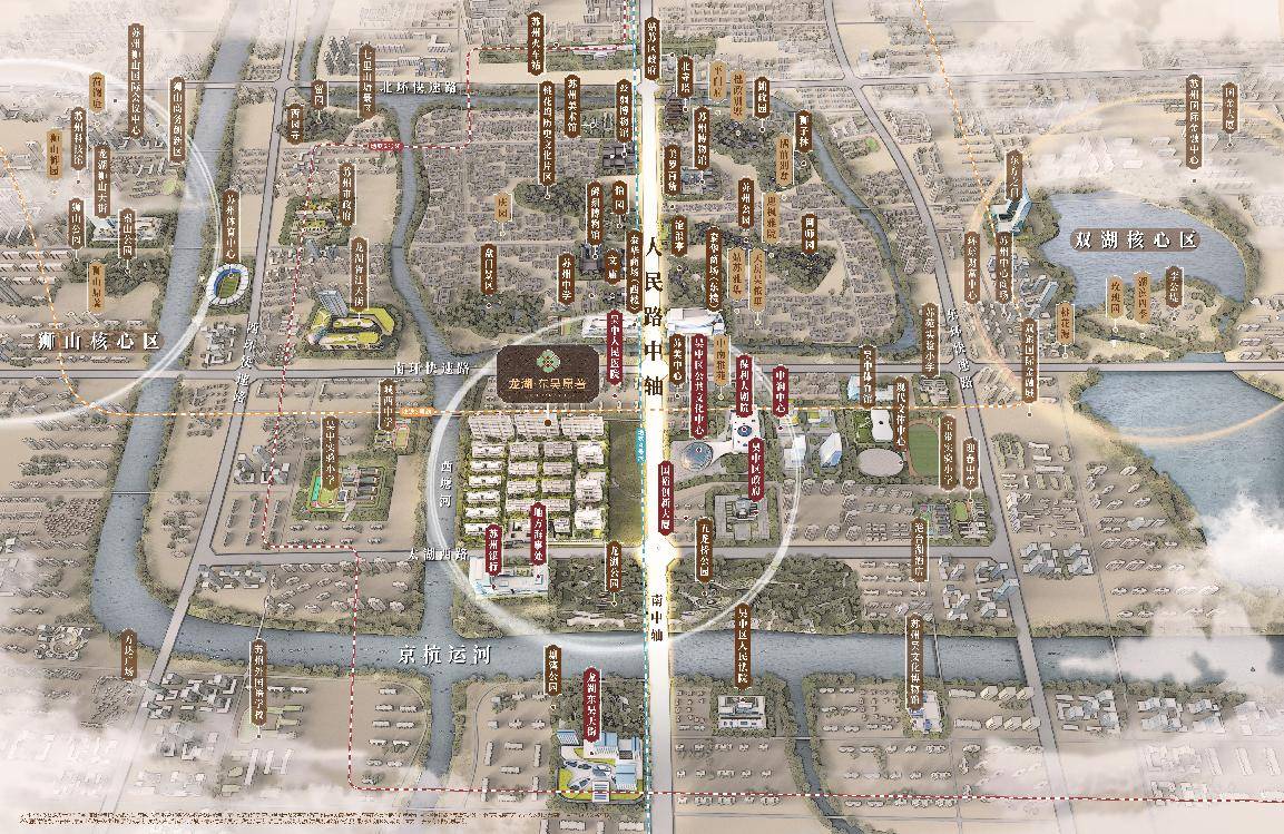 项目坐落于苏州古城核芯,这里是两千五百载姑苏文明的发源地与传承地。生活于此,不仅是安家,更是与一部厚重的历史同席而居。出门即是成熟的城市界面,商业、医疗、教育等优质配套环伺,既能瞬间切换都市繁华,又能随时回归静谧家园,真正实现了“出则繁华,入则宁静”的理想生活状态。