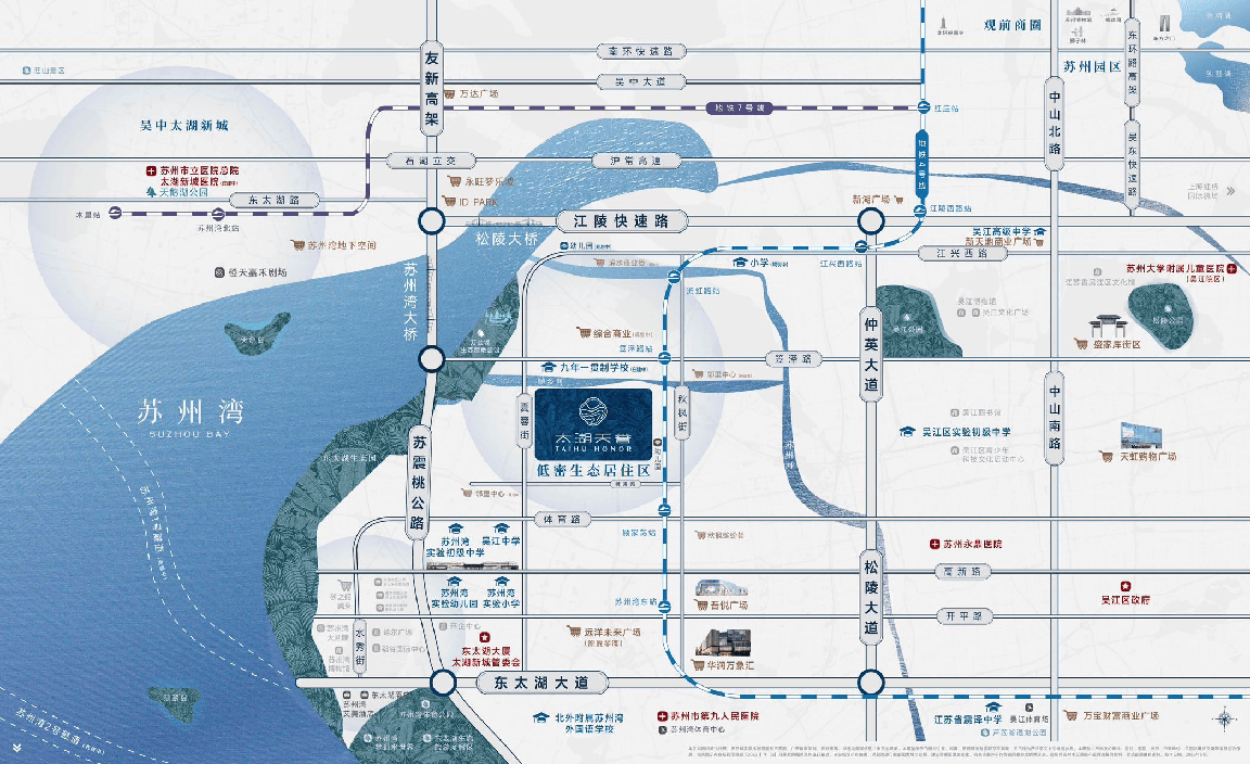 项目坐落于吴江太湖新城核心,具置在松陵林涛路88号。这是一个总占地约4.2万方、容积率仅约1.3的低密社区,只规划了7栋8-10层的洋房和24栋4层的叠加别墅,绿地率高达约30%,纯粹又安静。