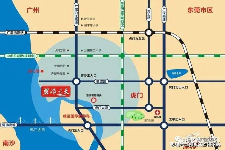四轨道:广深港高铁、东莞R2线、穗莞深城轨、中虎龙城轨,8分钟到达广深港高铁,通过白沙高铁站,20分钟畅达广深