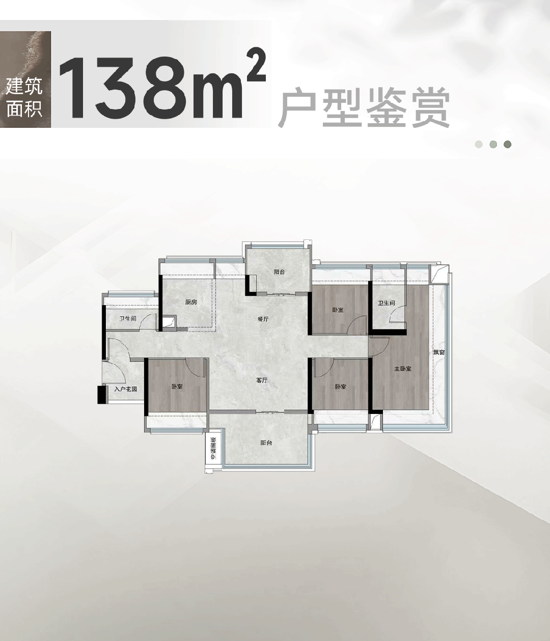 项目规划了3栋高层住宅,全部采用2梯4户的布局,保证了居住的私密性与舒适度。全盘坚持“纯四房”起步原则,没有设置任何小户型,精准锁定改善型客群。这种“一刀切”的大户型策略,在社区氛围营造、圈层纯粹性以及社区资源分配上具有天然优势。目前推出的四大主力户型分别为建面约100㎡、106㎡、119㎡和138㎡,每一个户型都经过精心打磨,旨在满足不同家庭结构的多元化需求。