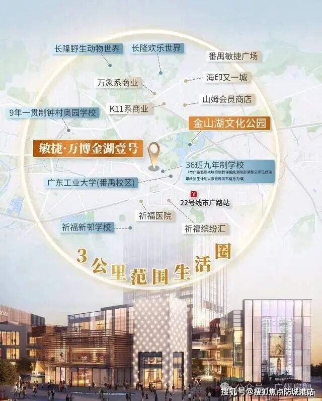 随着番禺城市南拓进程持续推进,南大干线全线贯通、万博板块业态持续扩容、片区路网不断优化,项目区位通达性将持续提升。地铁 22 号线全线通勤效能稳定,串联广州主城核心枢纽,进一步放大项目通勤优势;签约省实九年制学校稳步建设,未来招生办学后将补齐片区优质教育短板;金山湖公园生态界面持续优化,周边城市界面逐步更新完善。敏捷集团全程把控工程建设节奏,精装营造、园林打造、配套建设同步推进,项目既定 2028 年精装交付,建设周期规划合理,全过程工程进度可溯源、可查验,预售资金全程监管,全方位保障业主交付权益。